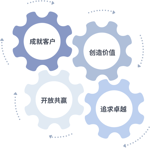 成就客户是一切决策的出发点,创造价值是衡量所有工作的标准,追求卓越是yp街机做事做人的态度,开放共赢是yp街机的格局也是最终的结果。价值观的齿轮环环相扣,推动着组织里的每个人不断向前。